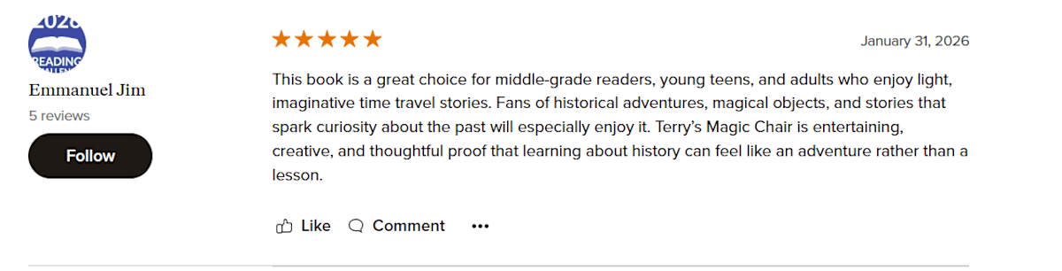 Take a look at these great reviews for my children's book TERRY'S MAGIC CHAIR